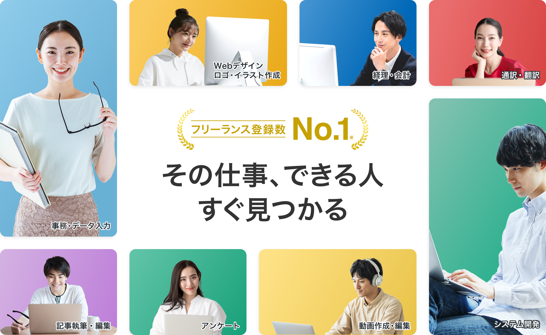 | 事務・データ入力 | データ入力、リスト作成、文字起こし |