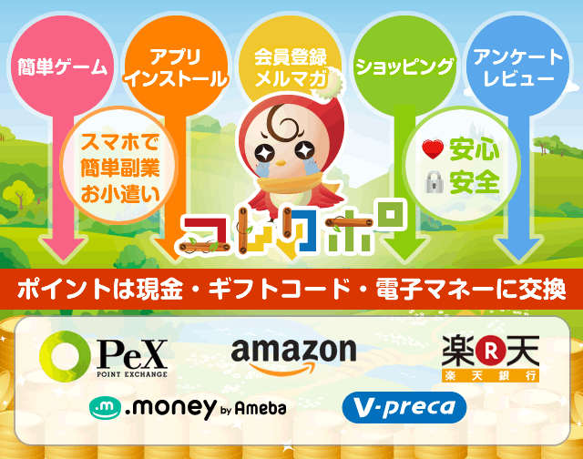 「見る・登録する・遊ぶ」だけでポイントが貯まる、完全無料のポイントサイトです!